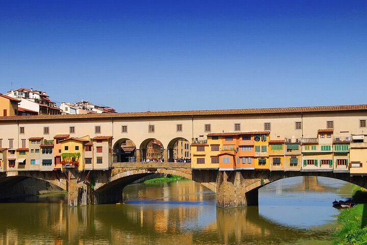于是,您这段精彩的步行之旅在佛罗伦萨最著名的 Ponte Vecchio 桥上画上句号——这座桥是佛罗伦萨最古老的桥梁。在这里,您将有机会一睹其著名的珠宝店风采。