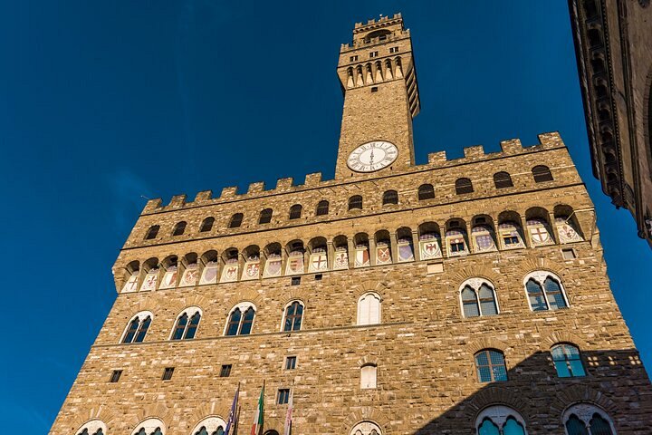 随后,您将穿越遍布精美珠宝的古桥(Ponte Vecchio),步行至领主广场(Piazza della Signoria),在那里您将看到老宫(Palazzo Vecchio)。