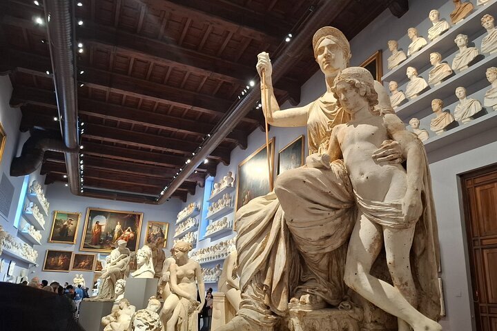 此次游览将从历史悠久的市中心出发,首先抵达学院美术馆。此次导览将详细记录米开朗基罗的艺术成就。在那里,您可以欣赏到他最著名的杰作,包括《大卫》,以及其他重要作品如《囚徒》和《圣马太》,还有《帕莱斯特里纳的圣母哀子像》。《大卫》是米开朗基罗用三年时间从未经雕琢的大理石中雕刻而成的巨型雕塑;它令人震撼,体现了文艺复兴理想赋予的永恒之美。