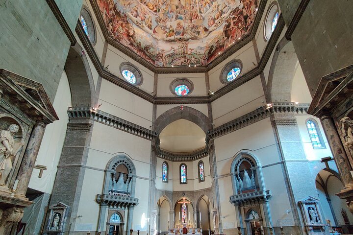 随后,向导将带您步行前往圣洛伦佐教堂,继而参观宏伟的佛罗伦萨大教堂建筑群,其中包括洗礼堂、布鲁内莱斯基设计的穹顶以及乔托钟楼。