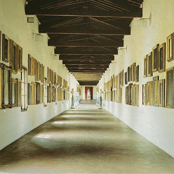 入口位于第三走廊,介于25号房间与34号房间之间。该走廊横跨阿诺河,通过老桥(Ponte Vecchio)连接乌菲兹美术馆(Uffizi)与老宫(Palazzo Vecchio)至皮蒂宫(Palazzo Pitti),由科西莫一世·德·美第奇(Cosimo I de' Medici)委托瓦萨里(Vasari)设计,仅用五个月时间于1565年完工。