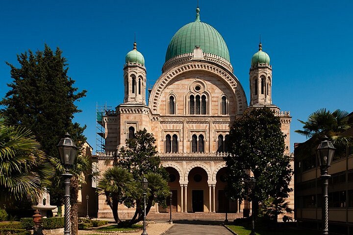 Die große kupfergrüne Kuppel der Großen Synagoge ist ein berühmtes und wunderschönes architektonisches Wahrzeichen von Florenz. Sie wurde 1882 eröffnet, der „Tempio Maggiore” wurde kurz nach der Befreiung der italienischen Juden im Jahr 1861 erbaut. Dies ist eines der besten Beispiele für den europäischen maurischen Stil in der Architektur. Das Innere bietet eine ganz andere Atmosphäre mit vielen Wandmalereien, sanftem Licht, das durch die bunten Glasfenster fällt, und fantastischen Mosaiken.