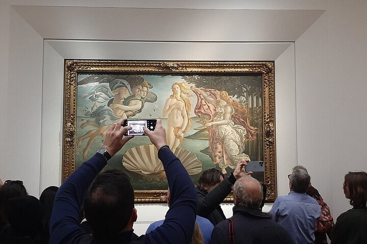 "Primavera" and "Birth of Venus." The latter is a hallmark of the museum; it shows allegory with the goddess coming out from sea foam-ideal beauty concretely represented as coming from purity and all things spiritual.