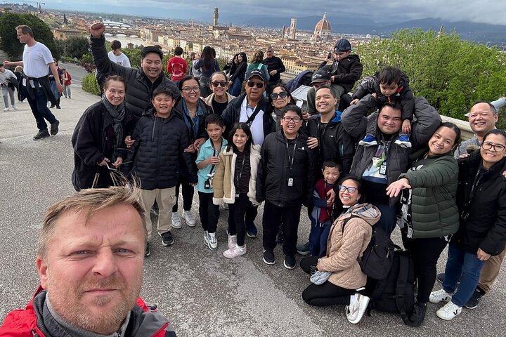 De tour omvat beroemde uitkijkpunten zoals Arcetri, de thuisbasis van Galileo, en Piazzale Michelangelo, die een prachtige mix van natuur, cultuur, geschiedenis en gastronomie bieden.