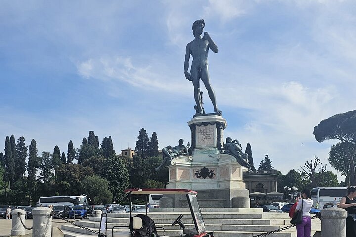 Welkom bij onze elektrische golfcar-tour langs de schatten van Florence! Boek nu voor een onvergetelijke ervaring in Florence! Ontdek de pracht van de Duomo, de eeuwenoude grandeur van het Palazzo Vecchio en de ongelooflijke meesterwerken van het Uffizi.