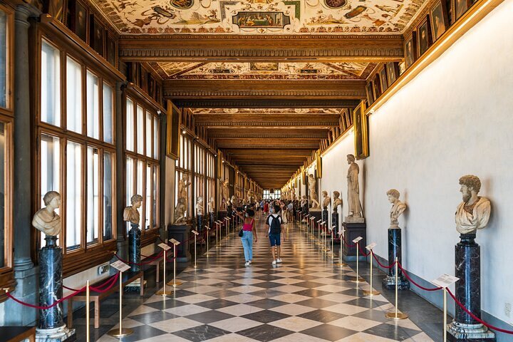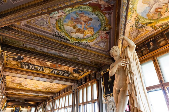 Skip the line at Florence’s Uffizi Gallery to witness its key masterpieces on this 1.5-hour small-group tour. Avoid the long entrance lines and, with an art-expert guide, admire paintings by masters including Leonardo da Vinci, Botticelli and Michelangelo, plus select other works. Plus, visit the Uf...